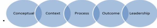 In the 2000s, another dimension was added to concept, context, process and outcome, it was leadership: