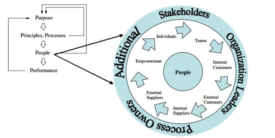 “…People are the process owners (individuals and teams) who performed work that is consistent with principles and processes of an organisation to achieve its purpose. Purpose, principles and processes must be in place and aligned before people can be consistently effective...”