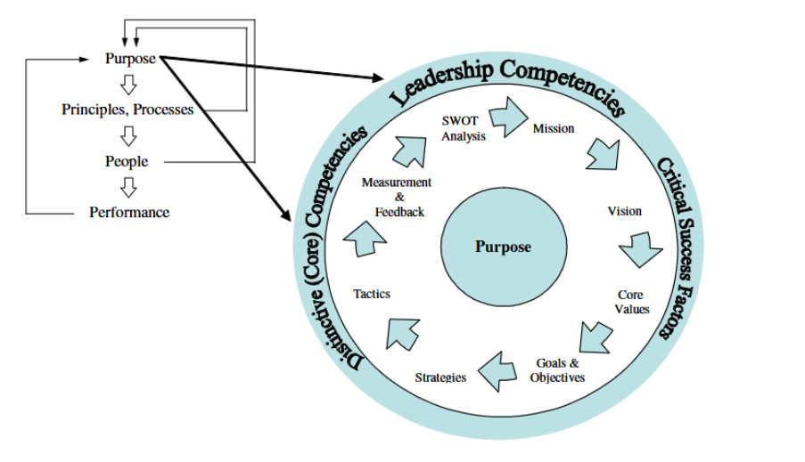 Purpose refers to the strategic intent or direction of the organisation; it includes the organisation vision, mission, goals and objectives, strategies, measurements and feedback.