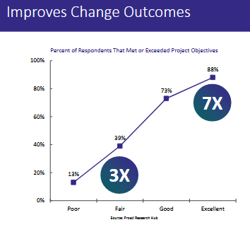 NB Both the technical and people sides need to work together for successful change management. This increases the chance of meeting change goals around 88% of the time, compared with around 30% of poorly managed change; even incremental changes can improve performance by 3 times (see diagram below).