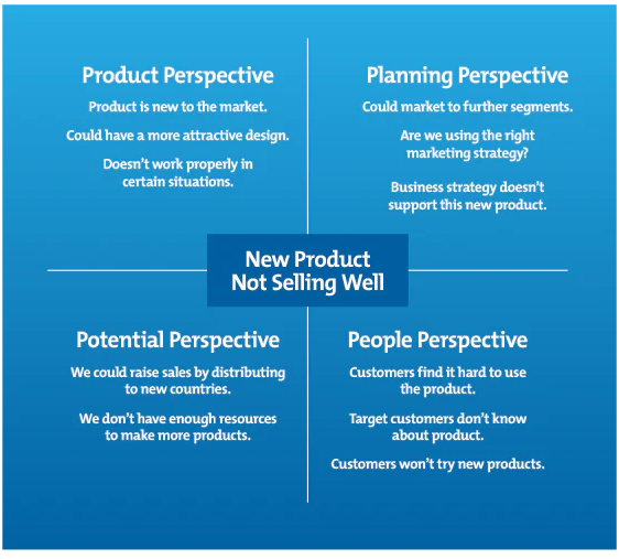 Alternatively, look at the problem from the perspectives from different stakeholders’ points of view.