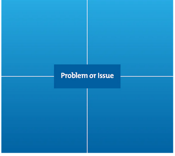 - Draw a simple 4-square grid (leaving a space to name the problem or issue that needs exploring)