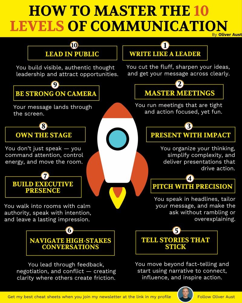 𝐋𝐞𝐯𝐞𝐥 1: 𝐖𝐫𝐢𝐭𝐞 𝐥𝐢𝐤𝐞 𝐚 𝐥𝐞𝐚𝐝𝐞𝐫 (ie, concise, clear and compelling; whether it’s an email or a post, your writing becomes an asset.)
