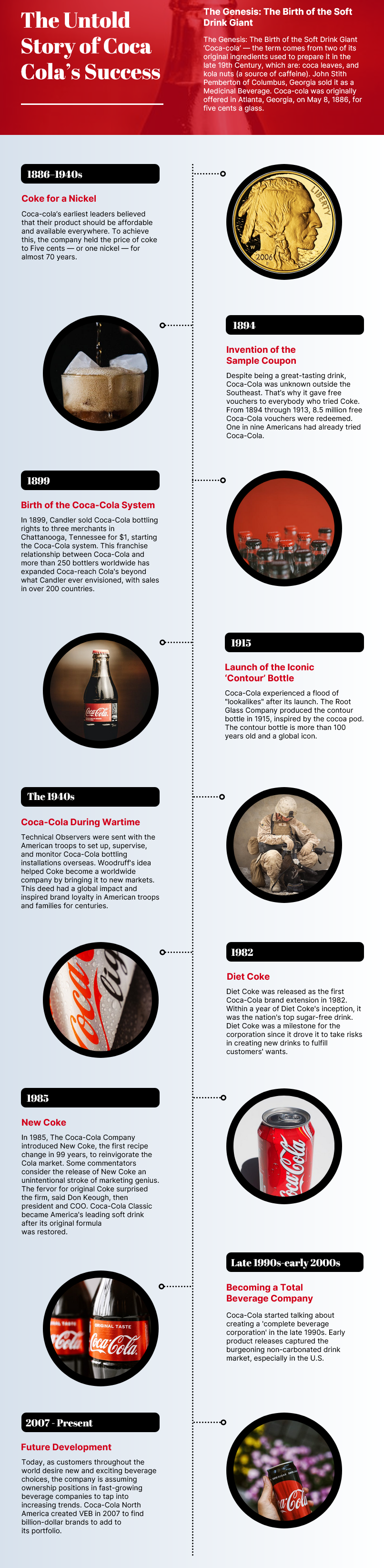 Coca-Cola, which started in 1885, is also a fascinating example. On the face of it, it would appear to be the exception to the rule. For over 100 years the company has sold the same product.