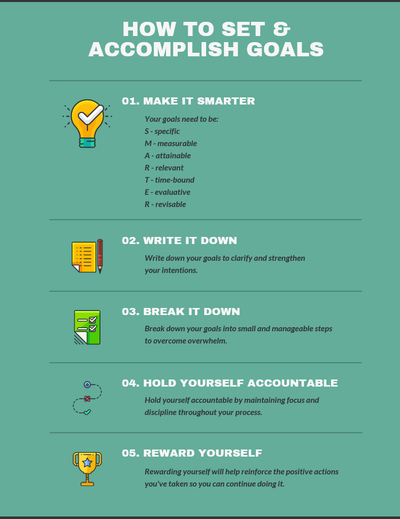 . Focus on goals that are SMART (specific, measurable, attainable, realistic and targeted) or time bound