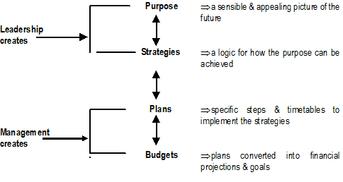 Relationship between Leadership, Management, Purpose, Strategies, Plans and Budgets