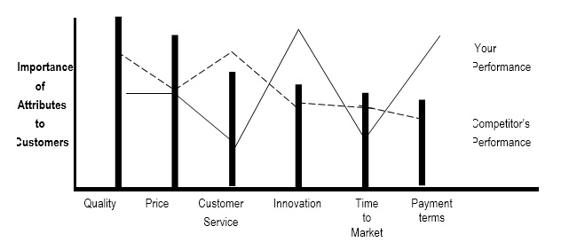 The bar chart represents the customer's perception of the industry plus your organisation and one competitor.