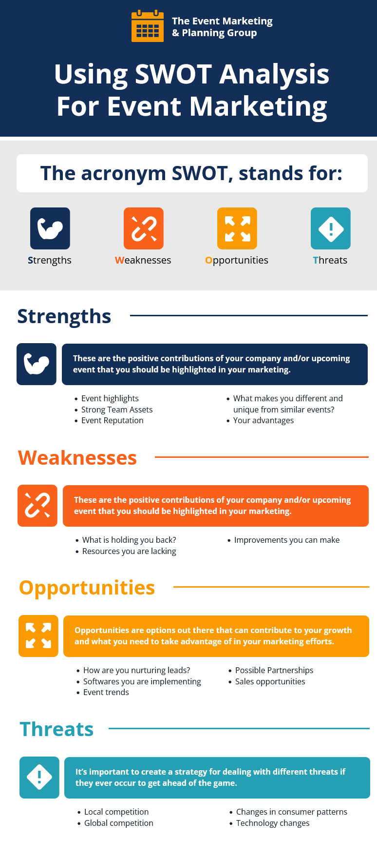 It provides a snapshot of where you are now (strengths and weaknesses) and suggests some future directions (opportunities and threats)