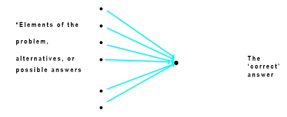 Convergent thinkers work in a rational, analytical, reasoned, logical, systematic way with an orderly arrangement of facts so that one correct answer is found.
