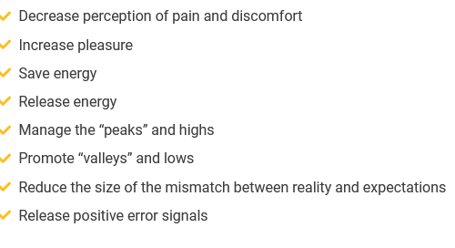 - in response to rewards, dopamine, endophins and oxytocin are released; these will make us feel motivated, increase bonding and trust, reduce the pain of change, encourage creativity and insights, favours a growth mindset, etc. Release of dopamine, endophins and oxytocin are needed to encourage and facilitate a positive approach to change.