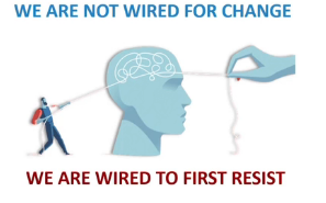 "...we 'humans' and our 'human brains' are not wired - in terms of biological or phycological processes- for change. Instead, we are wired to first resist and remain in the status quo..."