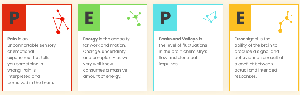 "...the intention of PEPE neuroscience is to provide a systematic brain-friendly approach to a very pragmatic and simple way to support engagement, motivation and well-being during changing times.