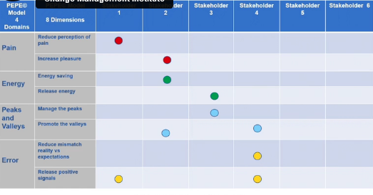 Using a heat map to show where different stakeholders are positioned in the PEPE framework and then develop strategies to handle: